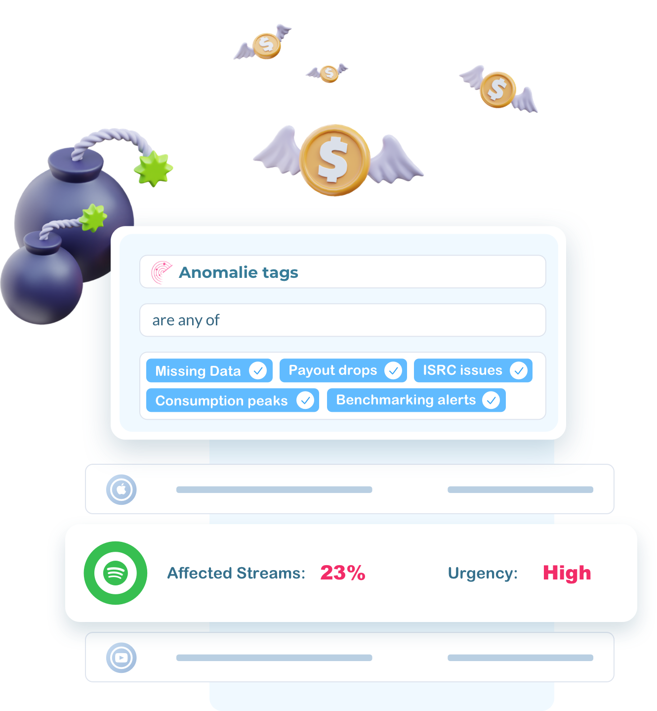 Based on various methodologies you can spot misalignments, the number of affected streams and resulting impact on potentially lost royalties.